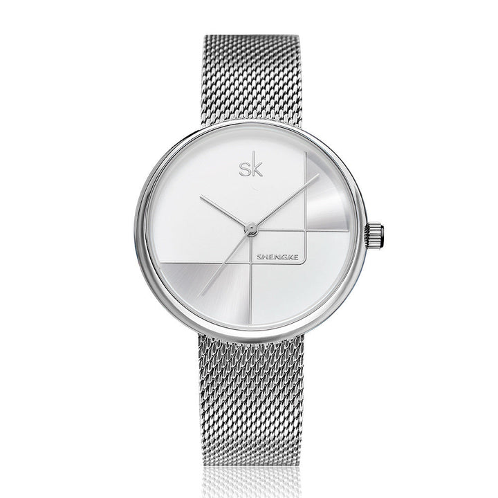 Women's Fashion Simple Geometric Quartz Watch Mesh Strap Watch